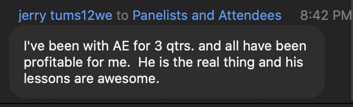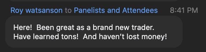During those lunch calls, I'll be placing live trades using what you learned in the evening classes.