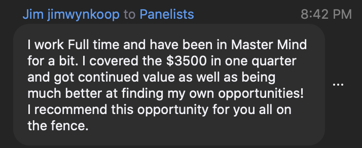 To recap, when you join the Trader's Advantage Mastermind, you're getting...